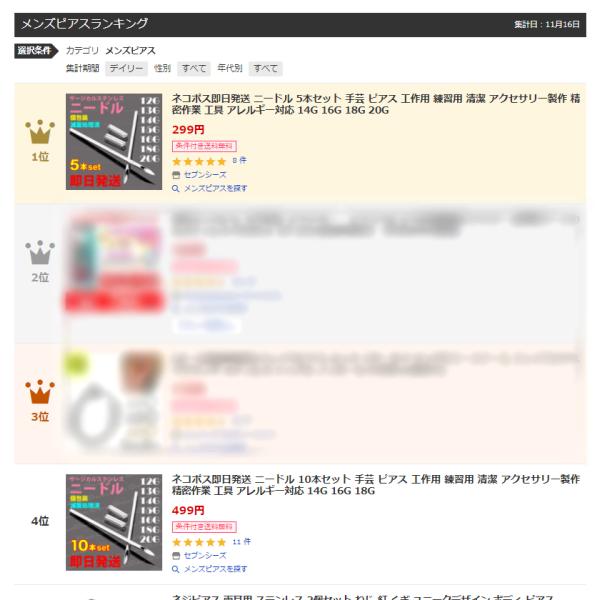 ※サービスピアスは1ヶです。(何本setでご購入いただいた場合でも1ヶです)