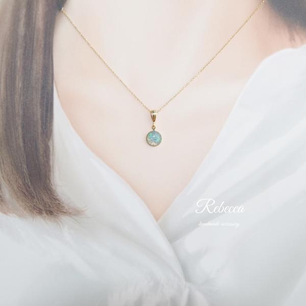 その京都オパールのフレークをレジンに纏わせたネックレスです。