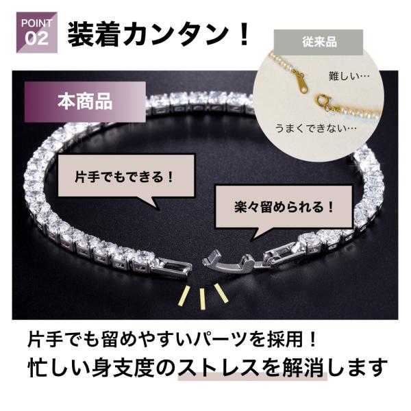 ・ 4mmラウンドカットされた美しいキュービックジルコニア。流行のキラキラとしたテニスブレスレットは、結婚式のパーティーや、夜のドレスアップにも最適です。
