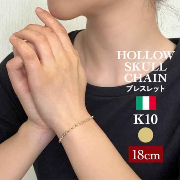 ブレスレット チェーン ミラーエクレア ミラーペタル K10 10金 k10 レディース メンズ 約1.6mm幅 金属アレルギー 18cm ゴールド 030