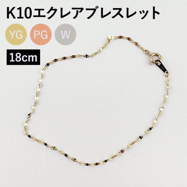 ブレスレット チェーン エクレア ペタル K10 10金 k10 レディース メンズ 約1.4mm幅 金属アレルギー 18cm 030