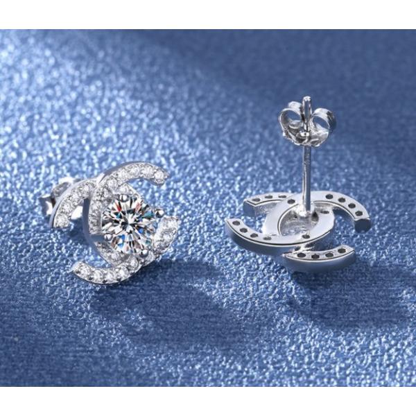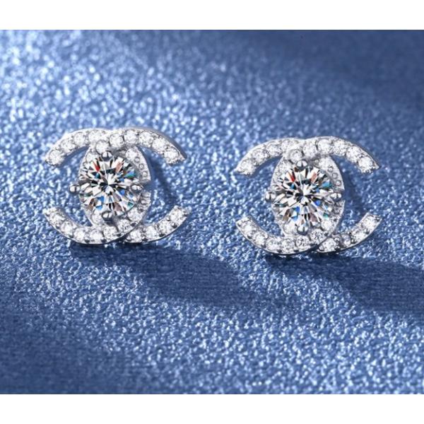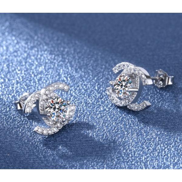 中央石約5mmスワロフスキークリスタルラインダブルC形、人気のデザインスタッドピアス/キュービックジルコニアczダイヤモンドスタッドピアス。