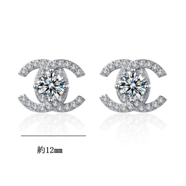 ピアス レディース シルバー925 ダブルC キュービックジルコニア スワロフスキー スタッド 2個セット アレルギー対応 18金 送料無料