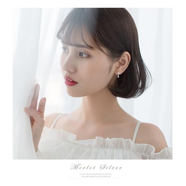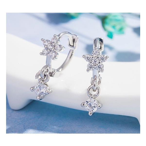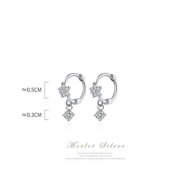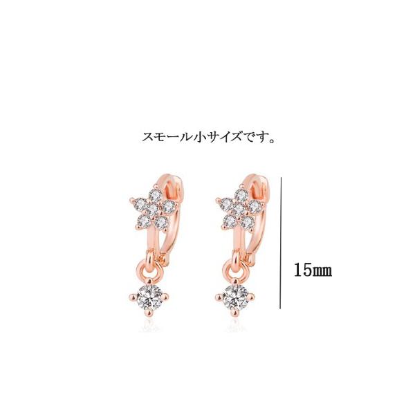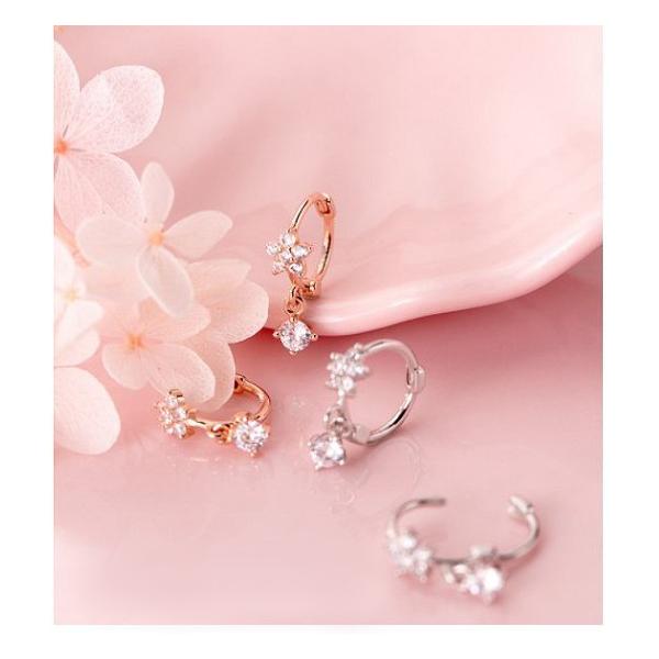 小さめ 揺れるフープ ピアス レディース シルバー925 ループ フラワー小花 リング中折れ CZダイヤモンド スモールサイズピアス送料無料。