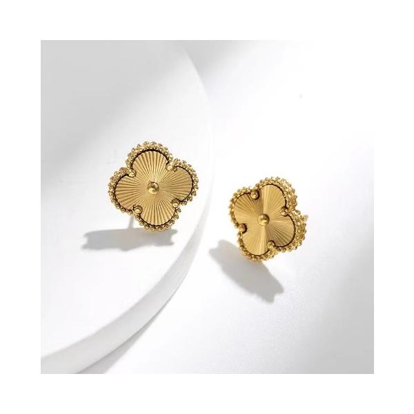 ネックレス ピアス レディース アレルギー対応 四つ葉 クローバー シンプル スタイリッシュ ゴールド あずきステンレスチェーン 18金 ペンダント