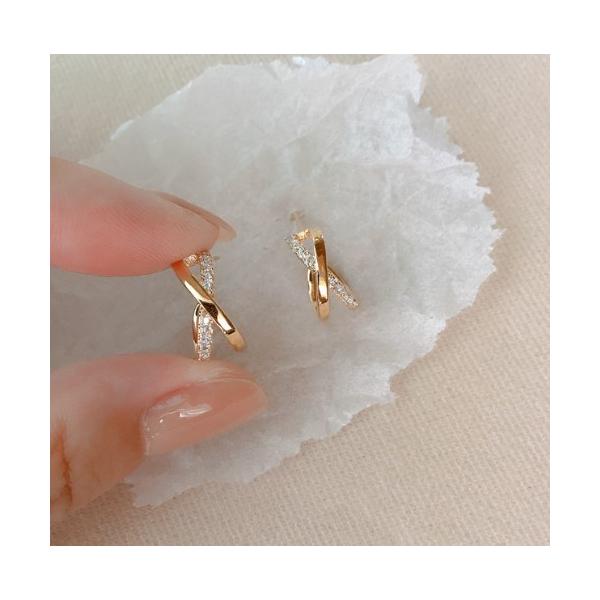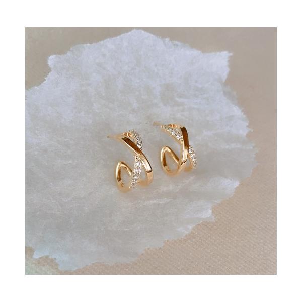 ピアス フープピアス アレルギー対応 18金 レディース 18k つけっぱなし 金属アレルギー対応 小さい シルバー925 2連 ラインストーン