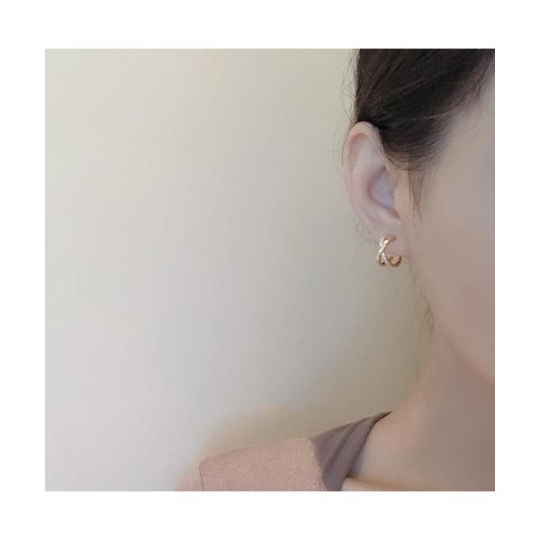 ピアス レディース 金属アレルギー対応 両耳2点 18K ピアス フープピアス ひねり ウェーブライン ループ ロング キュービックジルコニア シルバー925