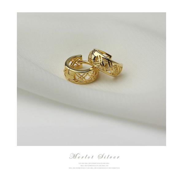 フープピアスレディース アレルギー対応 18金 ゴールド つけっぱなし メッシュ シルバー925 エリザベスピアス 小さい