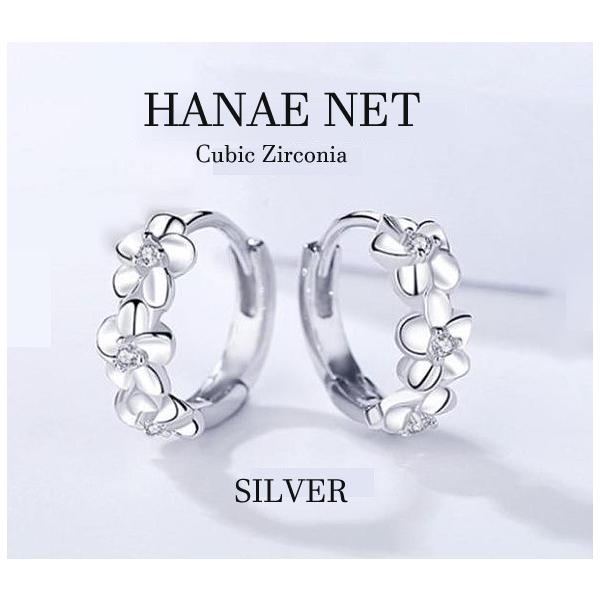 ピアス レディース フープピアス CZダイヤモンド シルバー925 プルメリアフラワー SILVER コーティング