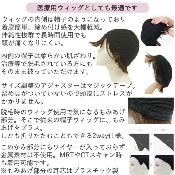 医療ウィッグ 医療かつら ウイッグ 室内ウィッグ 髪付き帽子 人工頭皮 もみあげ 白髪隠し 薄毛隠し