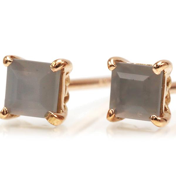 P10%中 グレームーンストーン スクエア ピアス 1ペア 両耳分 PT900 K18 K10対応 誕生石6月