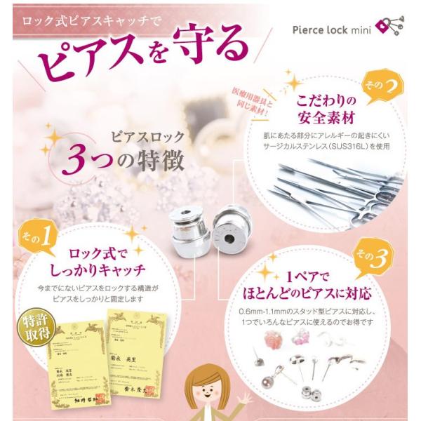 さらに、安心出来る日本の職人がひとつひとつくみ上げて作っているキャッチの「ピアスロックミニ」のご紹介