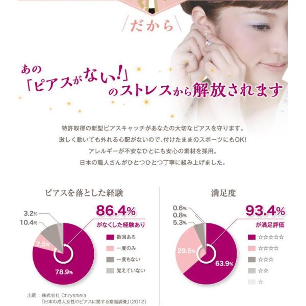 ピアスを落とさないために、特許取得の新型ピアスキャッチが大切なピアスを守ってくれます。