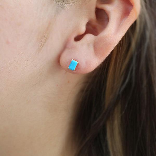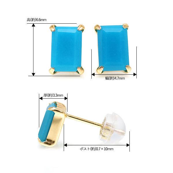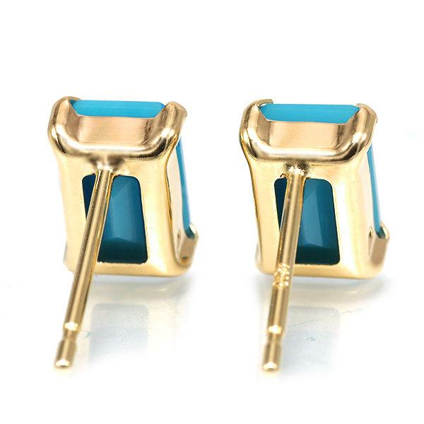あすつく K10YG 6×4mm トルコ石 ターコイズ オクタゴン 誕生石12月 お手軽ピアス