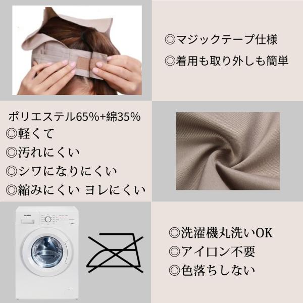 エプロンや三角巾に一番適していると言われるポリエステル65%・綿35%組み合わせの素材を使用しております。洗っても色落ちせず、シワにもなりにくいです。縮みにくい、ヨレにくい、汚れにくい特徴もあります。