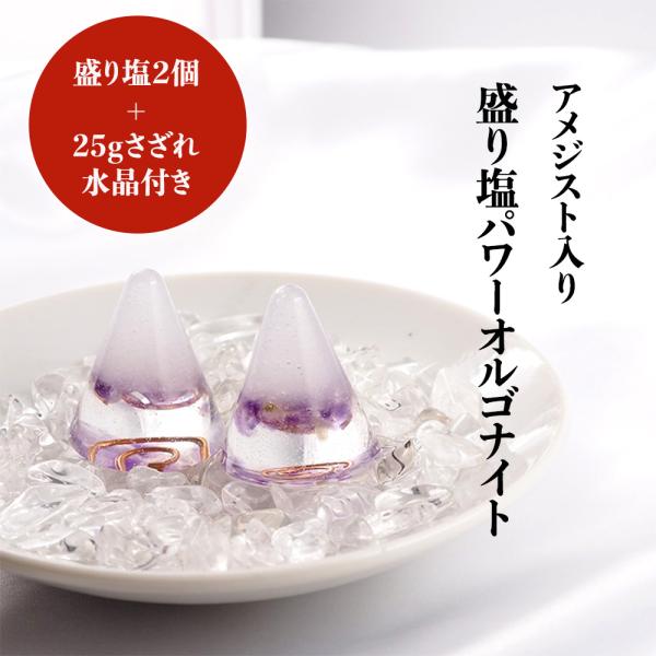 盛り塩 アメジスト <2個セット + さざれ水晶25g付き> 天然石 オルゴナイト 浄化 置物 インテリア おしゃれ パワーストーン 開運アイテム 幸運 開運 ギフト