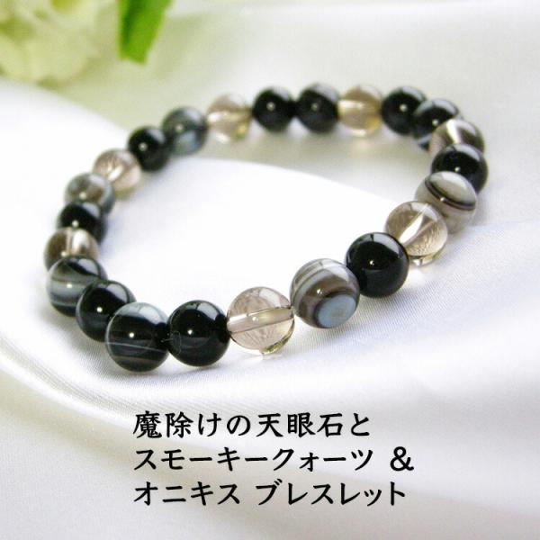 パワーストーン ブレスレット 天眼石 と スモーキークォーツ、オニキス 魔除け お守り 開運 金運 対人運 ギフト メンズ レディース 天然石 ギフト