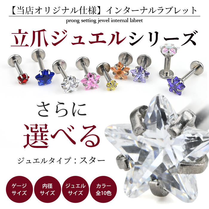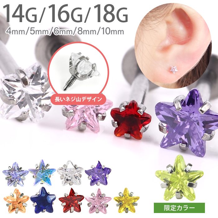 2月3月4月限定カラー入荷 高評価 4.43点 ボディピアス ラブレット 16G 14G 星 スター ジュエル 金属アレ対応 ステンレス 立爪ジュエルシリーズ