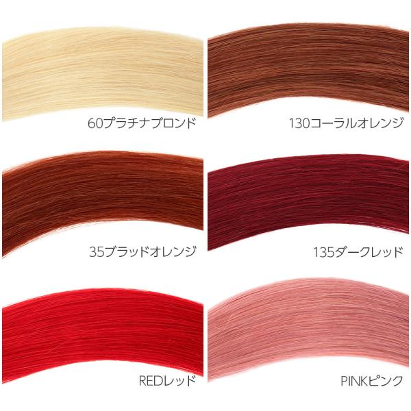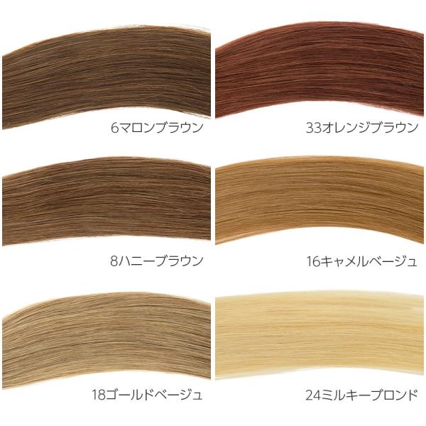 人毛100%なので地毛と一緒にコテやアイロンも使えますし、手触りも良いので自然に馴染んでくれます。ベーシックカラーと派手カラーの全20色