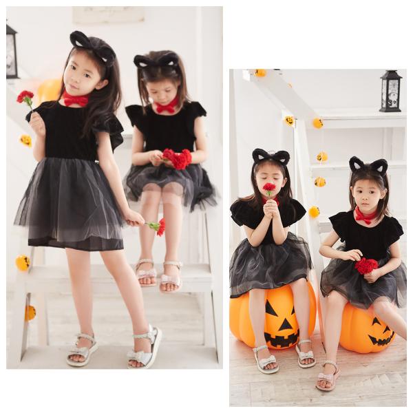 ハロウィーン コスプレ ハロウィン 衣装 子供 仮装 黒猫 キッズ ドレス 写真撮影 遊園地 テーマパーク 変身 なりきり コス ハロウィーン ベビー 寝相アート お遊戯会 クリスマス 記念日 誕生日 文化祭 ペア 小学生 ハロウィン子供 幼稚園 ホワイト 白 ブラック 黒 100 110 120 130 cm