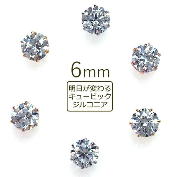 ピアス つけ サージカルステンレス 軸太 ロングポスト キュービックジルコニア 6mm 片耳 1個 かわいい おしゃれ