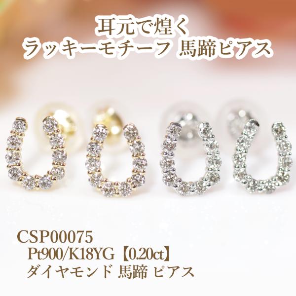Pt900 K18YG 0.20ct ダイヤモンド 馬蹄 ピアス クラシックチェス プラチナ ゴールド 18K お守り アミュレット ラッキー ラッキーモチーフ ホースシュー CSP00075