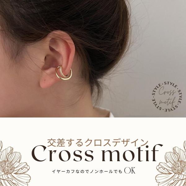 特徴:交差するクロスデザインが特徴のイヤーカフ。