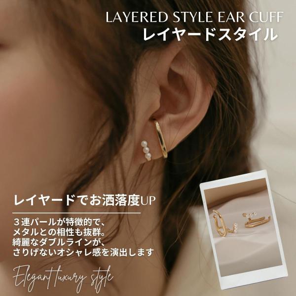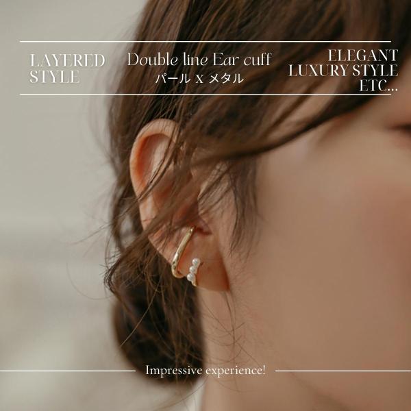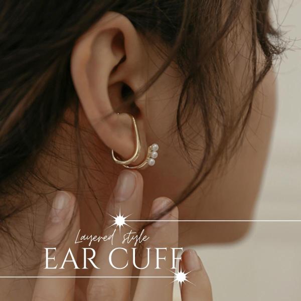 イヤーカフ イヤーカフス イヤカフ 両耳セット 金属アレルギー対応 18K ニッケルフリー ダブルライン パール レディース ジュエリー ゴールド シルバー 送料無料