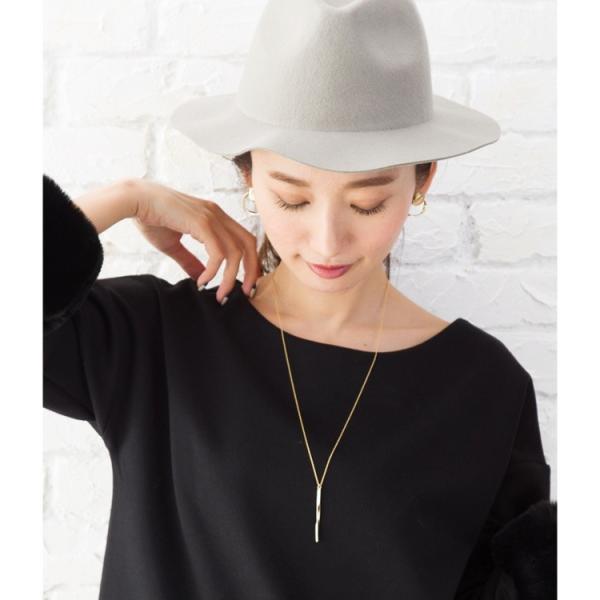 少しひねりを加えたメタルバーが女性らしいリュクスな輝きを放つロングネックレス。いつものコーデにプラスするだけで上品で洗練された雰囲気に。ちょっとした贈り物にも喜ばれるオススメのアイテムです。