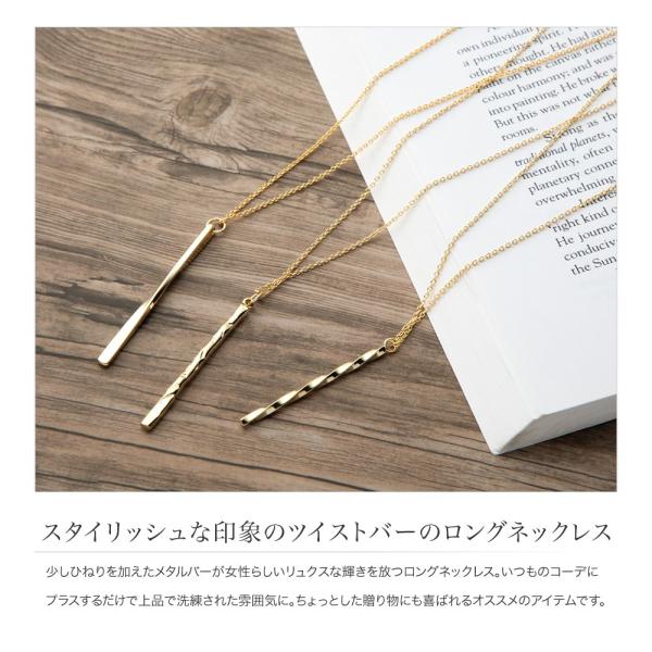 金属アレルギー対応 ネックレス ニッケルフリー 18kコーティング ロングネックレス チェーン ツイスト メタルバー