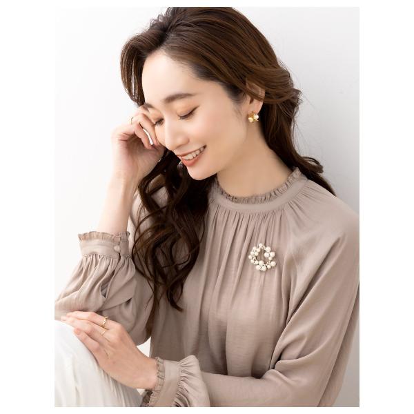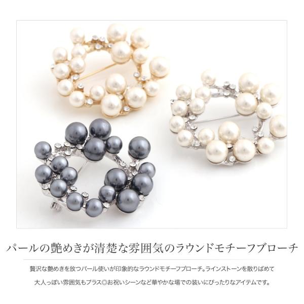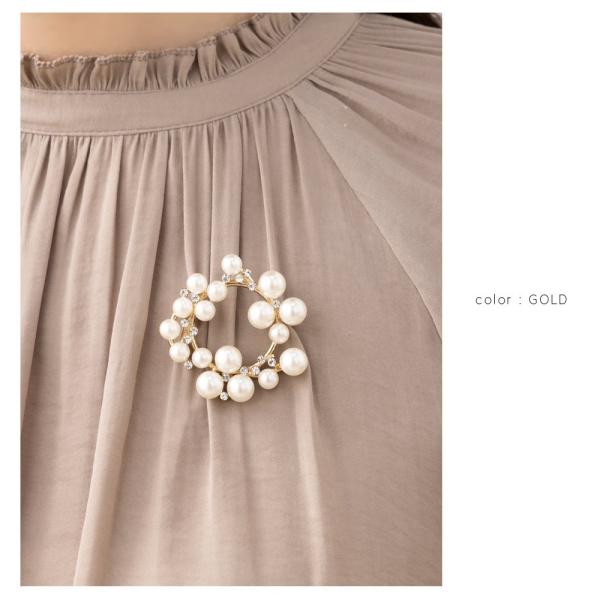贅沢な艶めきを放つパール使いが印象的なラウンドモチーフブローチ。ラインストーンを散りばめて大人っぽい雰囲気もプラス◎お祝いシーンなど華やかな場での装いにぴったりなアイテムです。