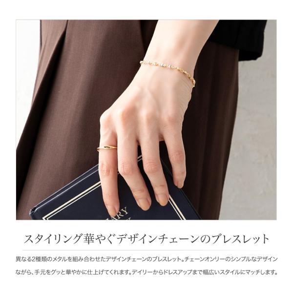 異なる2種類のメタルを組み合わせたデザインチェーンのブレスレット。