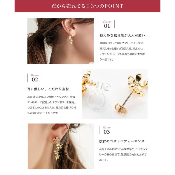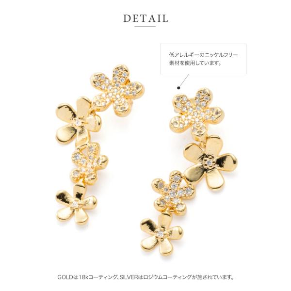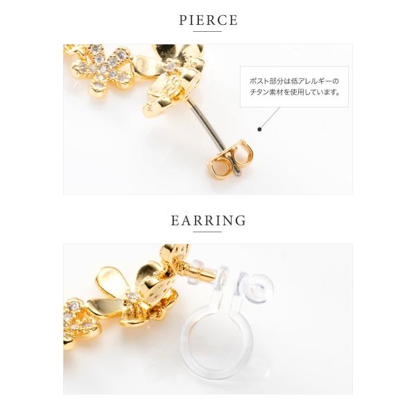 金属アレルギー対応 選べる ピアス イヤリング ニッケルフリー 18kコーティング チタンポスト フラワー パヴェ