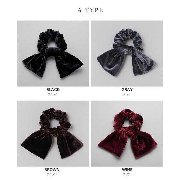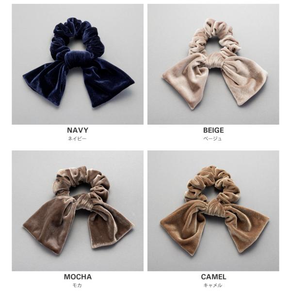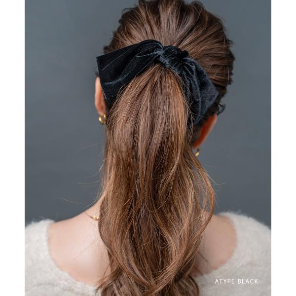 光沢感ある大きめベロアリボンのシュシュ。ポニーに沿って垂れるスクエア型リボンがアレンジをグッとオシャレな雰囲気に仕上げます。大人に似合うシックなカラーとサッと装着できるシュシュで普段使いしやすいアイテムです。