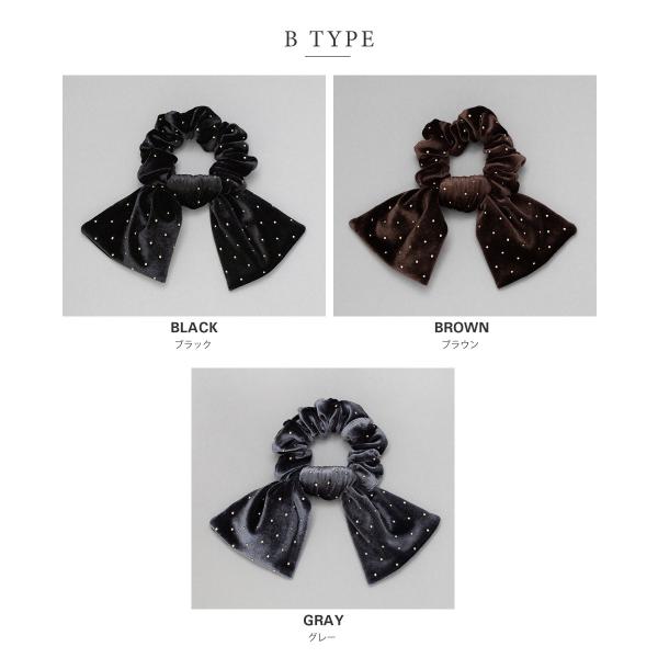 シュシュ リボン ベロア ベルベット スクエア ボリューム 大きめ ヘアアクセ ヘアゴム ドットスタッズ 2タイプ