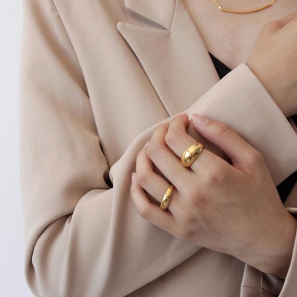 幅が選べるぷっくりメタルのリング。重厚感がありつつクールすぎないデザインでモードな雰囲気にアップデートしてくれます。手元コーデの主役にぴったり◎錆びにくいステンレス製でデイリーに活躍しそう。9号〜23号まで、全6サイズの豊富なバリエーションもポイント。