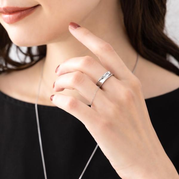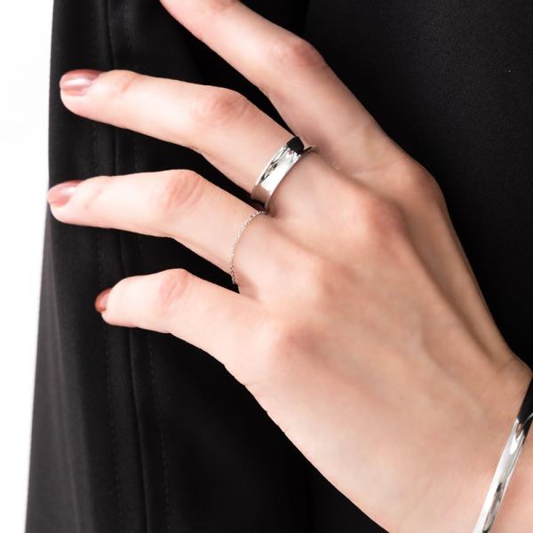 繊細な印象のステンレス製チェーンリング。細身のシンプルなデザインで指先を美しくこなれた雰囲気に仕上げます。お手持ちのリングと重ね付けを楽しむのもオススメです。