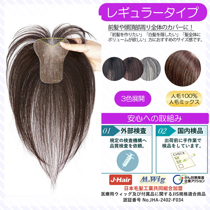 素材:人毛100%(ナチュラルブラック・ナチュラルブラウン)人毛MIX(シルバー)