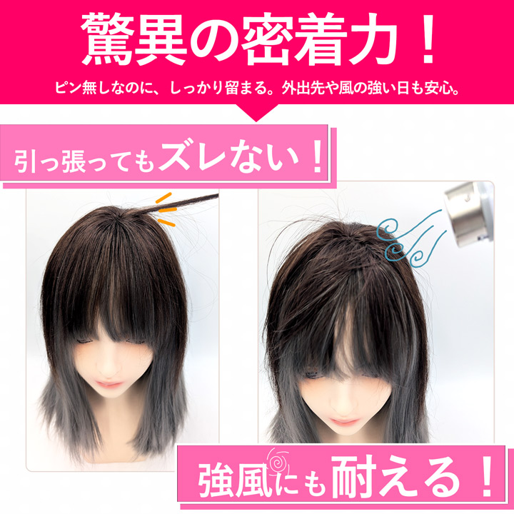 ピン無し 部分ウィッグ 前髪ウィッグ ウィッグ 白髪隠し ボリュームアップ 【マジックヘアピース レギュラータイプ 高品質耐熱ファイバー】