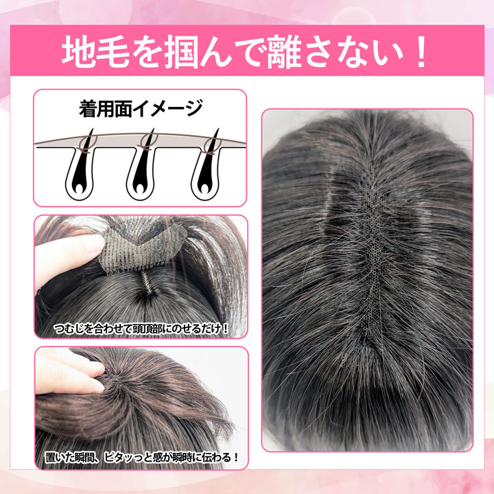 ●ピン無しなのに驚異の密着力!地毛に絡んでしっかり留まる!