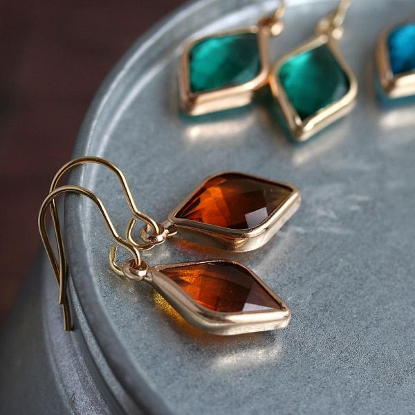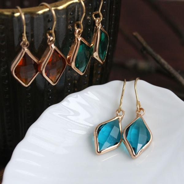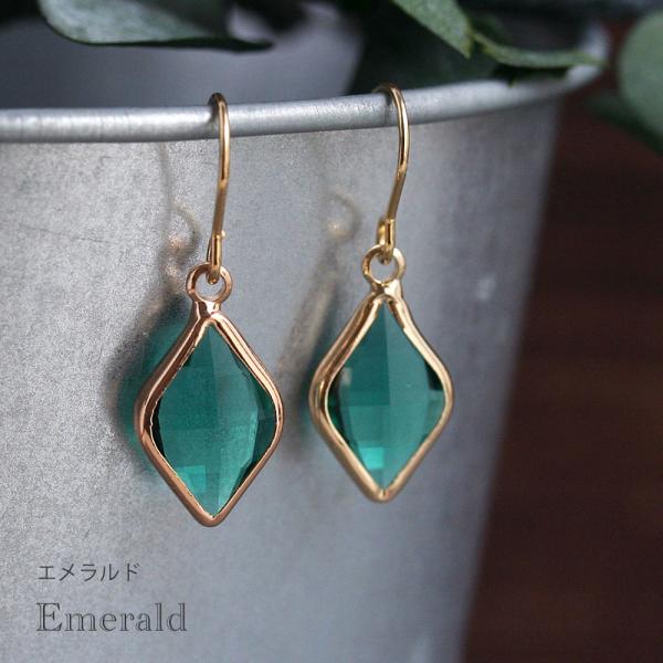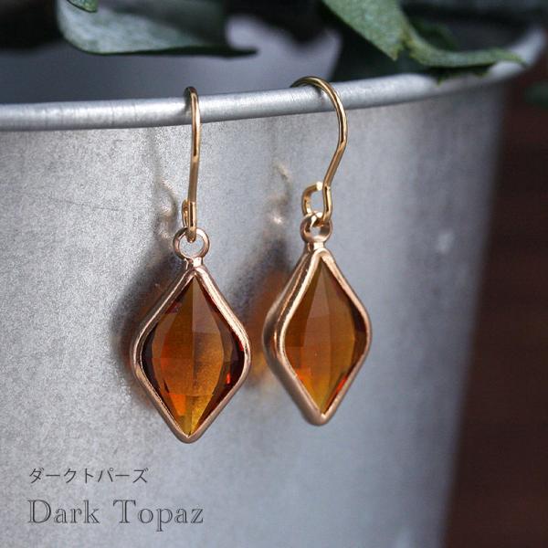 ピアス 金属アレルギー対応 ひし形カラーガラスピアス アンティークブルー ダークトパーズ エメラルド イヤリング変更無料 ステンレス 316L 菱形