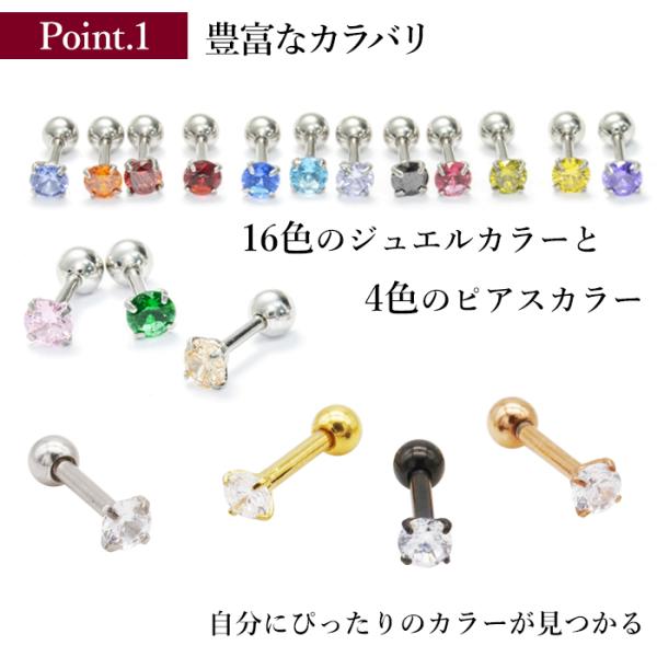 ボディピアス サージカルステンレス 選べるサイズ 2〜4mm 立爪 ラウンドCZ ストレートバーベル 16G 軟骨ピアス 耳ピアス ヘリックス