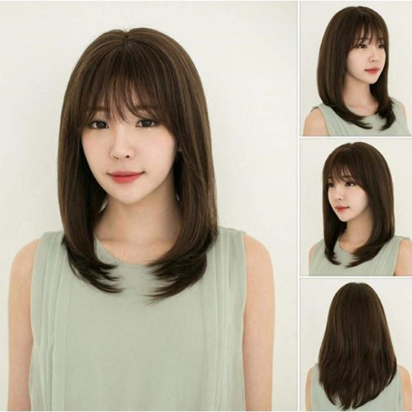 セミロング ウィッグ 肩先ボブ ミディアム ダークブラウン 医療用 カール ミディアム イメチェン 耐熱 WIG 耐熱 フルウィッグ 自然 ボブ