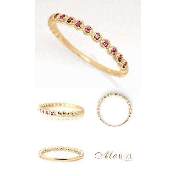 天然 ルビー ミル打ち ハーフ エタニティ リング K18 k10 ゴールド各色 指輪 レディース 重ね付け 細身 細め シンプル 赤 18金 10金 品質保証書付
