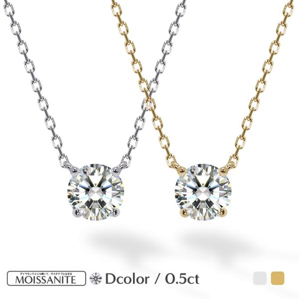 ネックレス レディース 0.5カラット モアサナイト ひと粒 モアッサナイト ダイヤモンド 類似石 一粒 シンプル ギフト ジュエリー