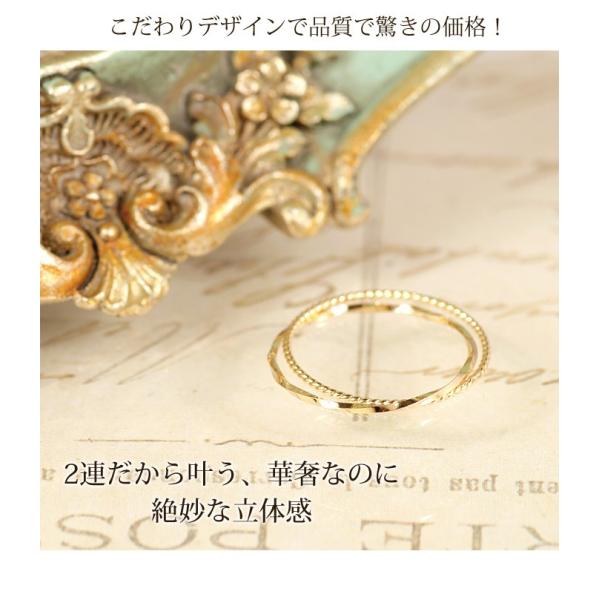 指輪 レディース 2連リング 10金 K10イエローゴールド ピンクゴールド 華奢 シンプル 極細リング