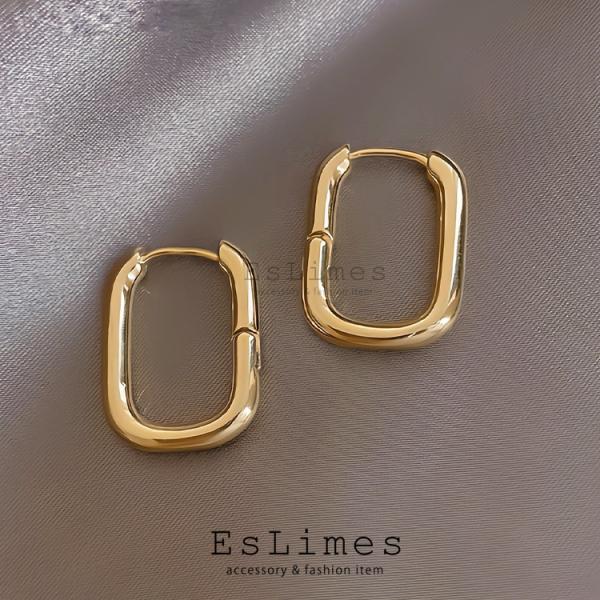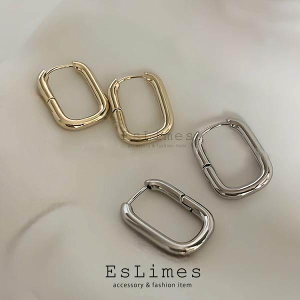 ピアス レディース フープピアス U型 スクエア 四角 18kgp 中折れ 20代 30代 40代 シルバー ゴールド おしゃれ カジュアル 女性 個性
