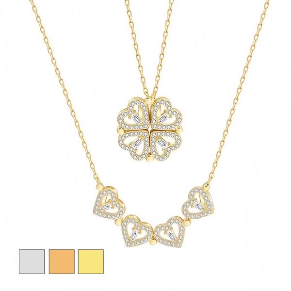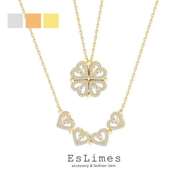 半額セール ネックレス レディース 四つ葉のクローバー お花 2way ステンレス 贅沢 18KGP シルバー ゴールド 女性 誕生日お祝い プレゼント ギフト 爆買