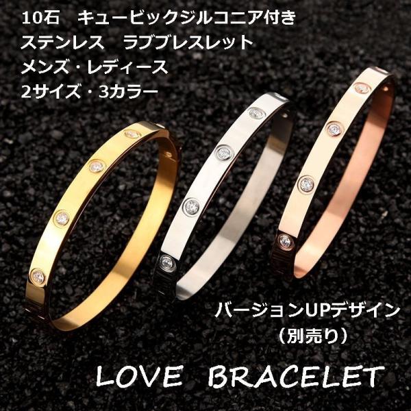 ブレスレット バングル ラブ LOVE メンズ レディース 人気 イエローゴールド ピンクゴールド シルバー ビスモチーフ ジルコニア 男性用 女性用