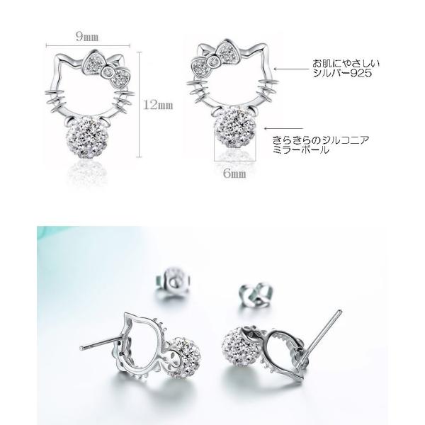 ピアス Kitty キティ シルバー925 プラチナ仕上げ ミラーボール パール ジルコニア きらきら 可愛い ギフト プレゼント sale
